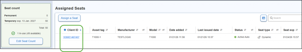 Select the blue ‘Client ID’ for the seat we wish to revoke.