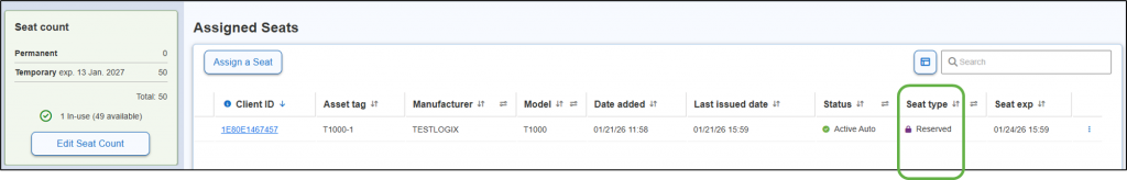 - Reserving a seat for a specific device is intended to protect license capacity, not to prevent seat expiration. 'Reserved' does not mean 'permanent access' if the device can't check in before its seat expires.
