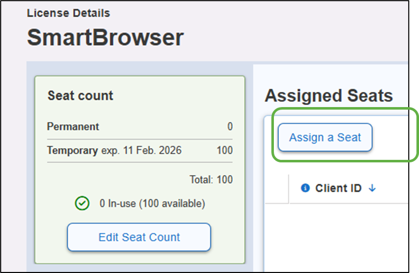 In SmartHub, select the ‘Assign a Seat’ function from the 'License Details' dashboard.