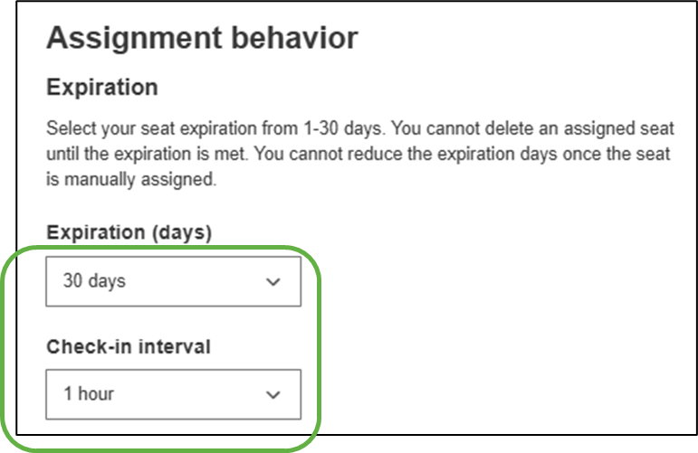 Unlike Auto-enrollment, the expiration timeframe for a Manually-assigned seat can be set to a maximum of 30 days.
