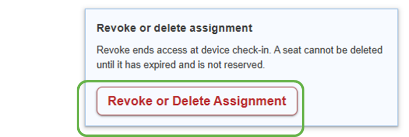 From the ‘Edit seat’ pop-up window select ‘Revoke or Delete Assignment’.