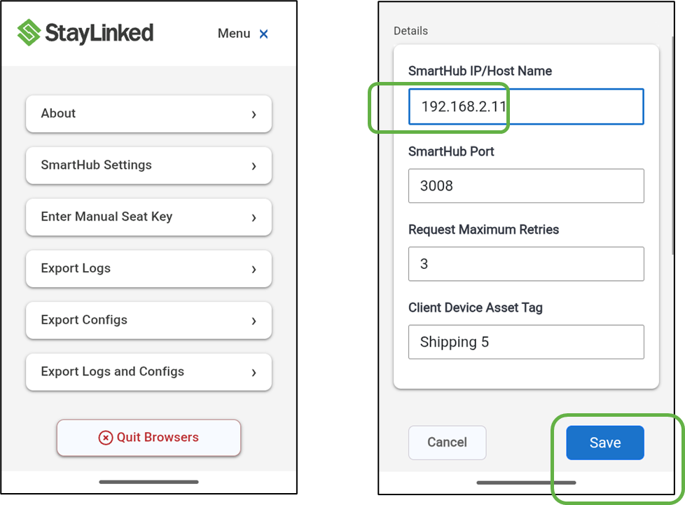 Enter the IP address of the computer hosting SmartHub. Leave the rest of the options at default and tap ‘Save’.