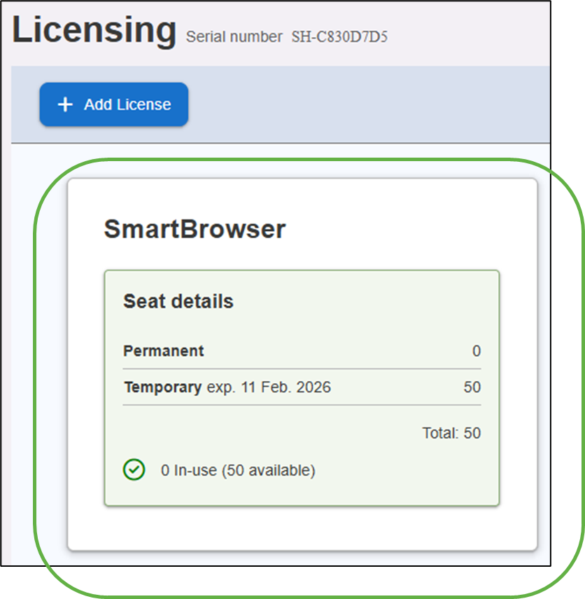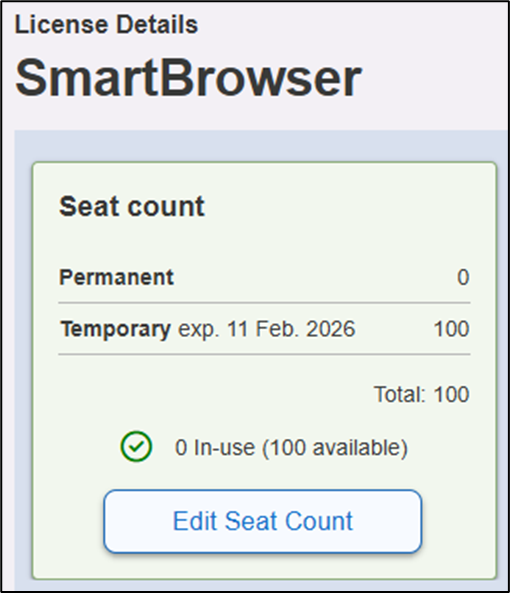 Reserving a seat guarantees that a specific device always retains access to SmartBrowser, regardless of activity patterns or fleet changes.