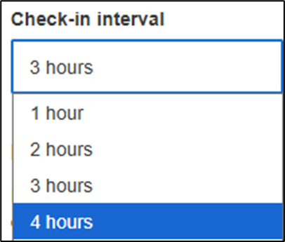 Check-in interval can be set from 1 to 4 hours. For this example set to 3 hours.